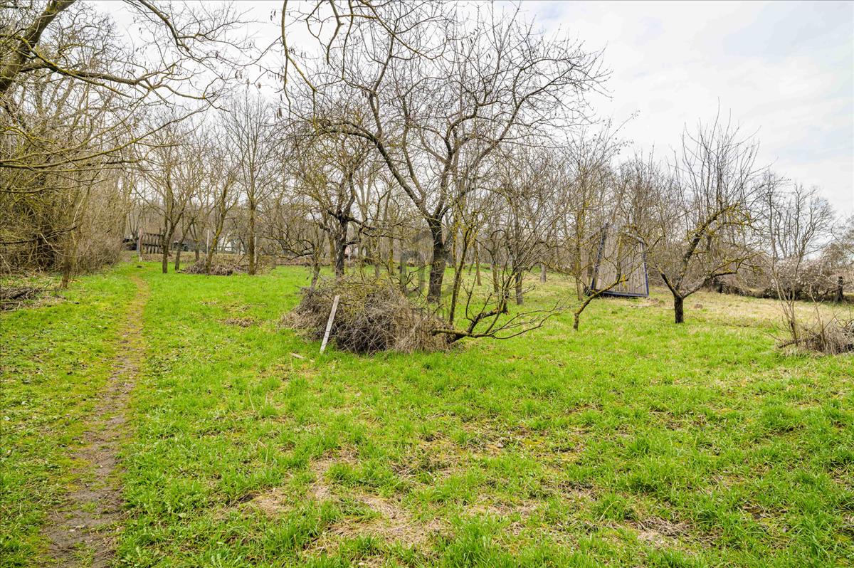 A 805 m²-es, gondozott telek gyümölcsfákkal beültetett, kiválóan alkalmas pihenésre, kertészkedésre vagy vendégek fogadására.