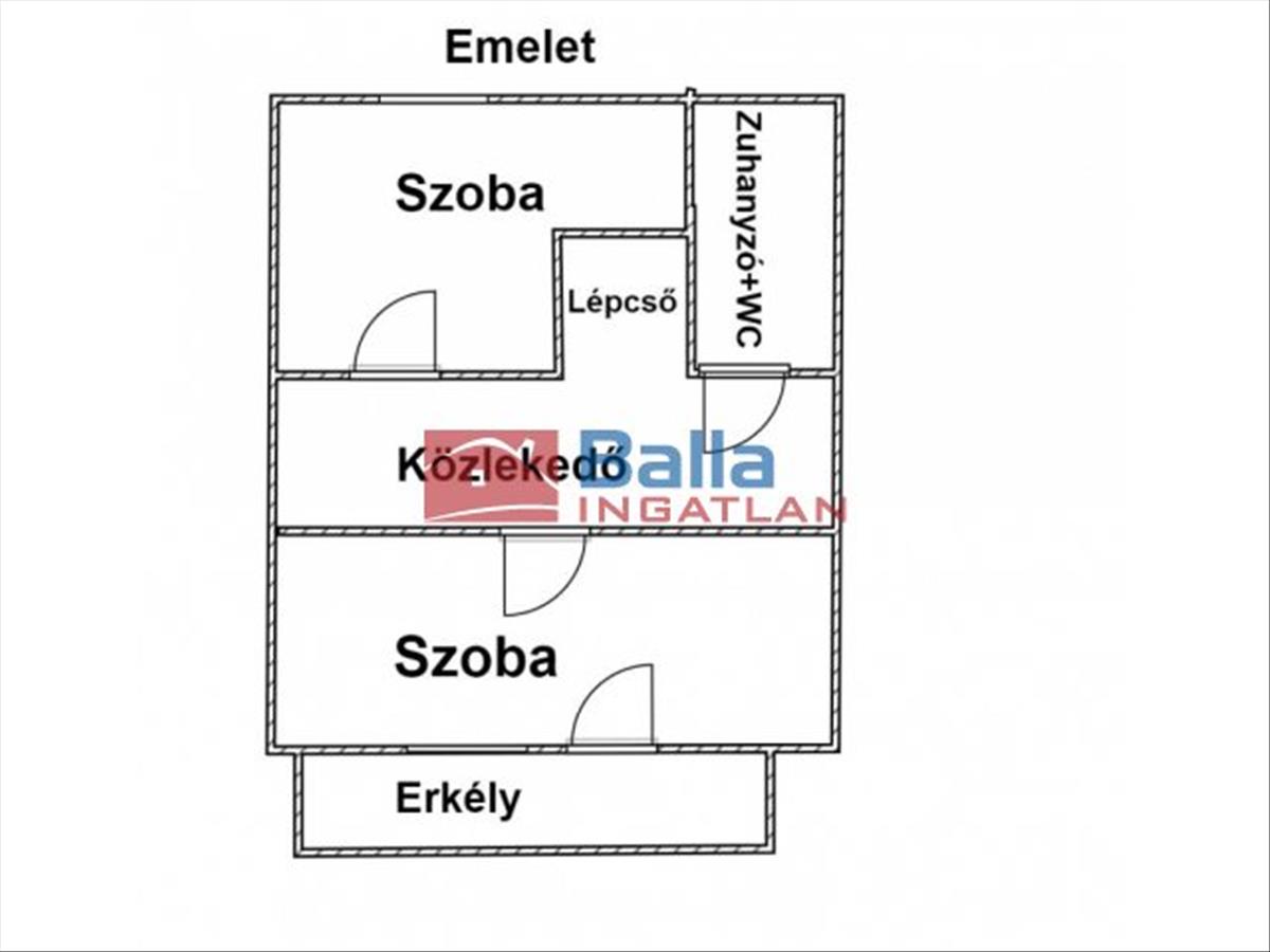 Emeleten : 2 szoba, előtér, fürdőszoba+ Wc, erkély.