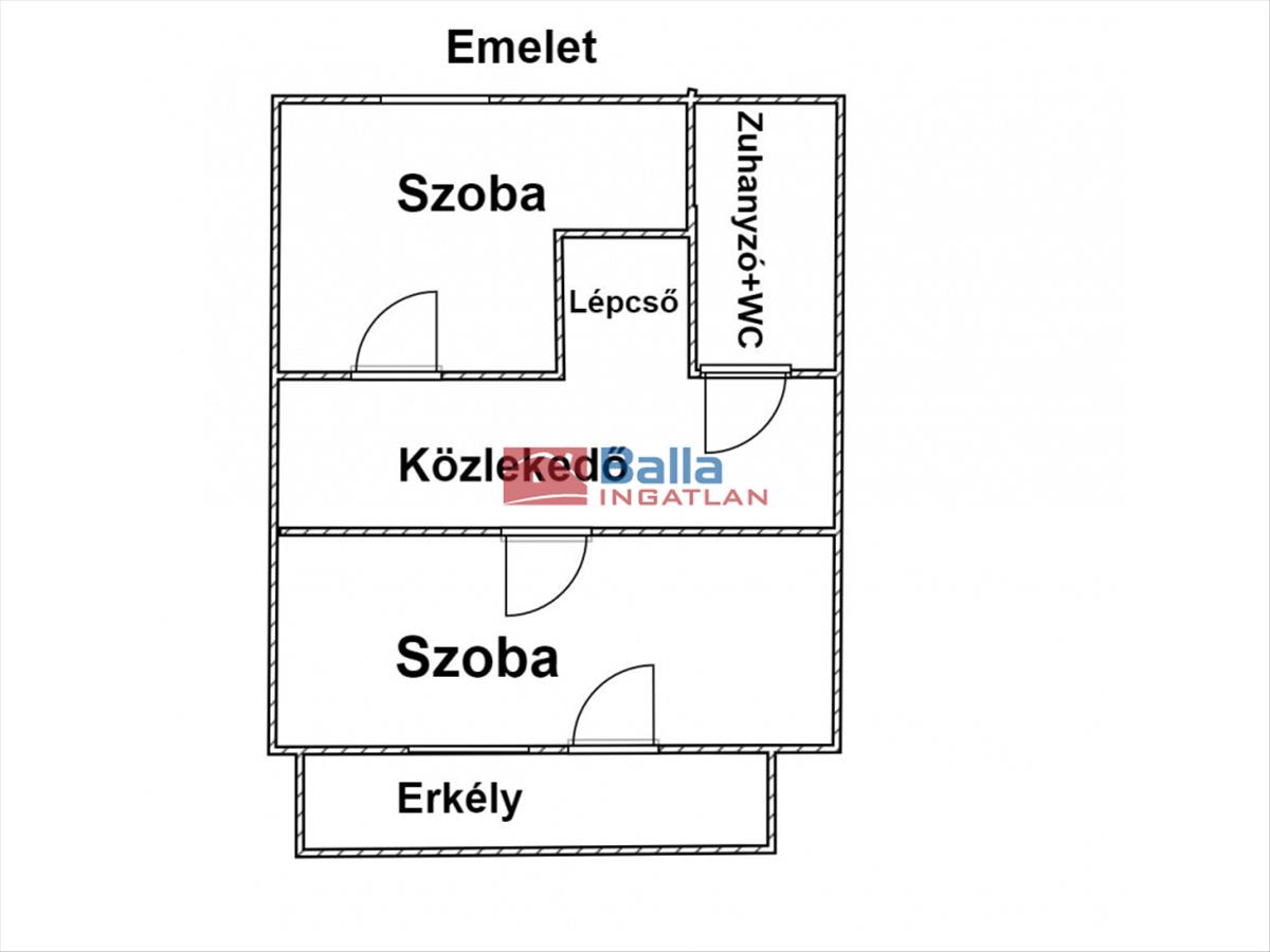 Emeleten : 2 szoba, előtér, fürdőszoba+ Wc, erkély.