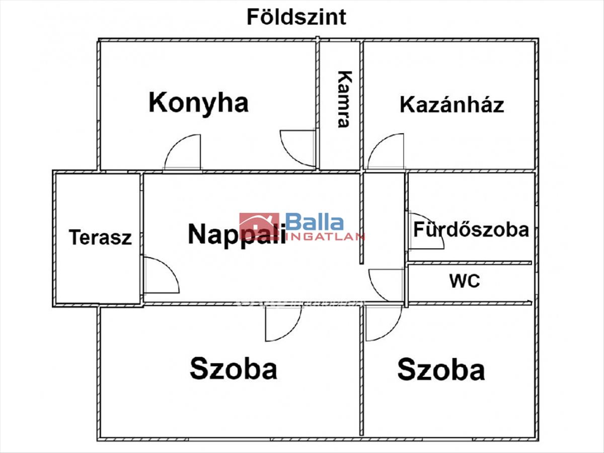 Földszinti helyisége: 3 szoba, konyha, kamra, fürdőszoba, külön mellékhelyiség, kazánház, terasz.