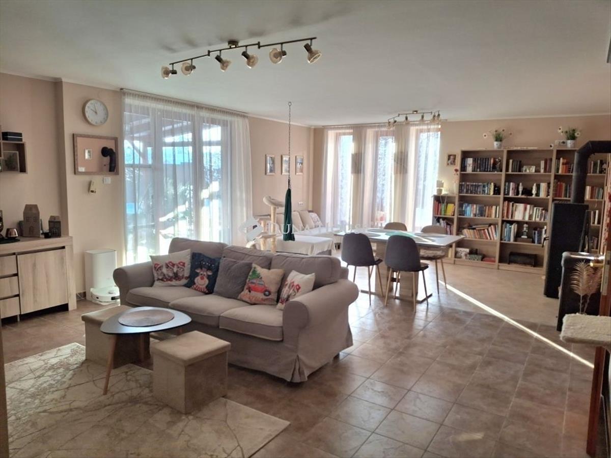 A nappaliból egy kellemes, 16 m2-es, a közelmúltban felújított teraszra is kiléphetünk, mely remek helyszíne lehet pihenésnek, játéknak. a ház ezen része azonnal költözhető állapotú, ízlésesen berendezett. a teljes ingatlan rendszeresen karbantartott.