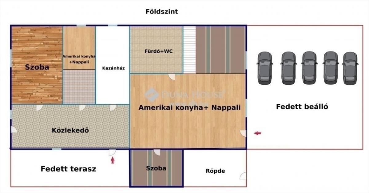 Földszinten: 2 szoba, 2 nappali +amerikai konyha, folyosó, kazánház, fürdő+wc.