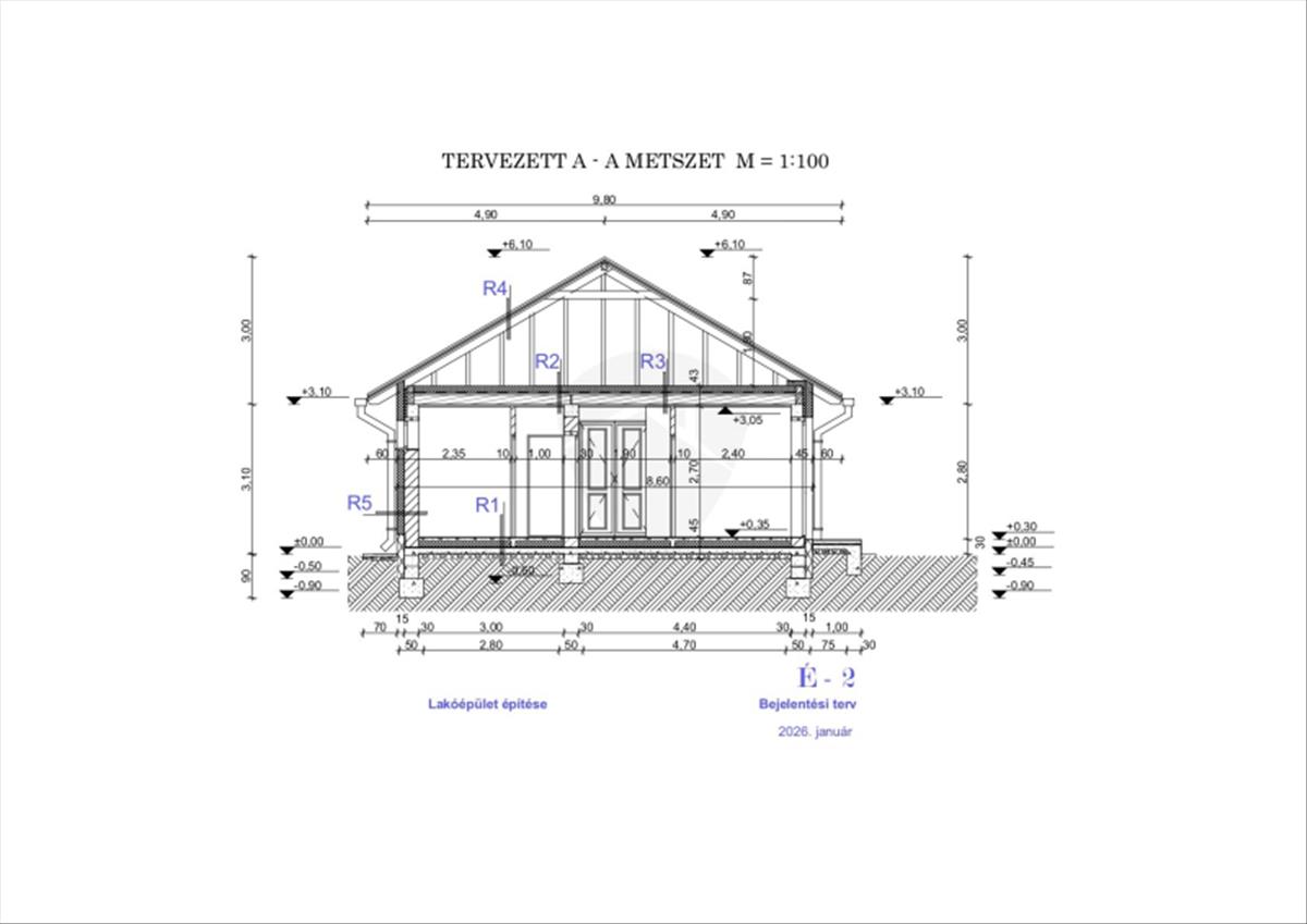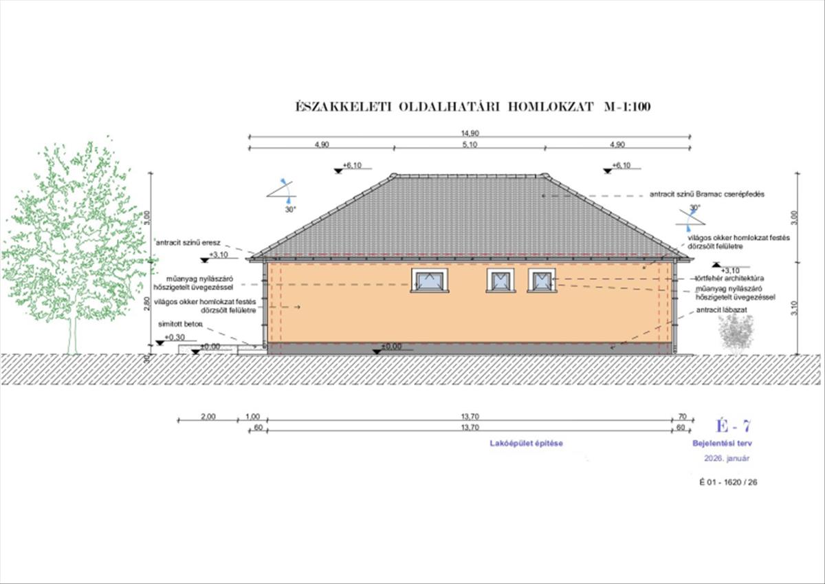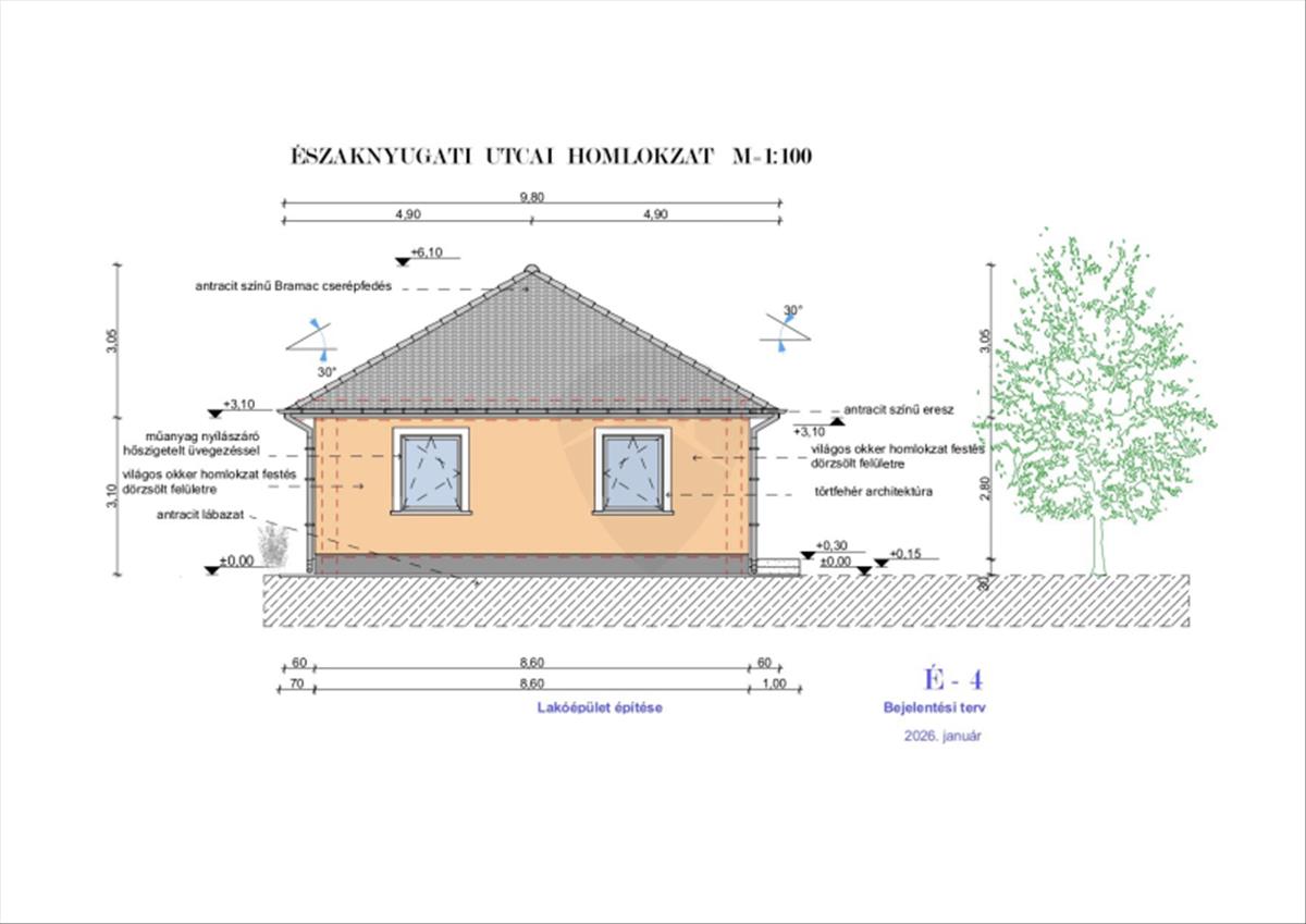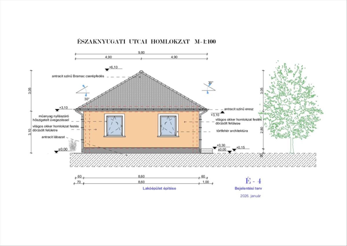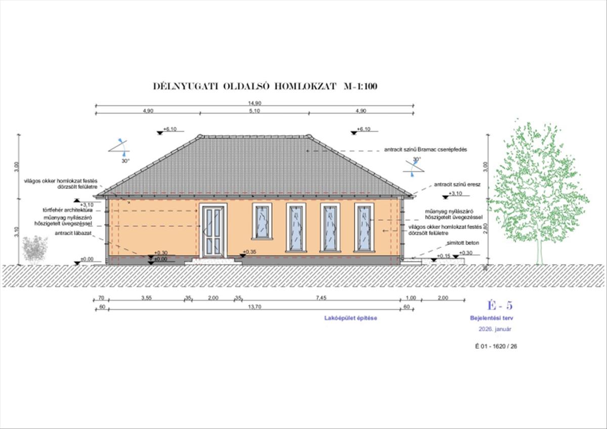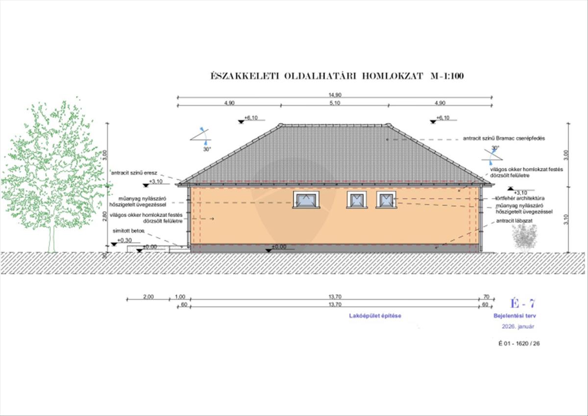 Minőségi Szerkezet: Hagyományos 30-as tégla főfalak, vasalt beton alap és elegáns antracit betoncserép fedés.