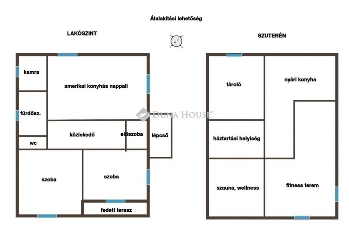Könnyen átalakítható 2 nagyobb vagy 3 kisebb hálószoba + amerikai konyha nappalis otthonná, a szuterén részen pedig fitness, wellness, szauna, nyári konyha, hobby szoba is.