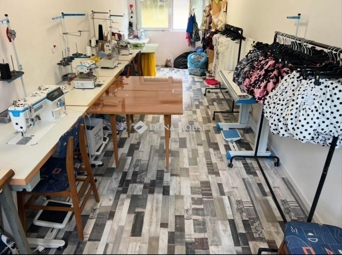 valamint egy külön helyiség, amely jelenleg varrodaként működik, de irodának vagy otthoni vállalkozás számára is kiváló lehetőséget kínál