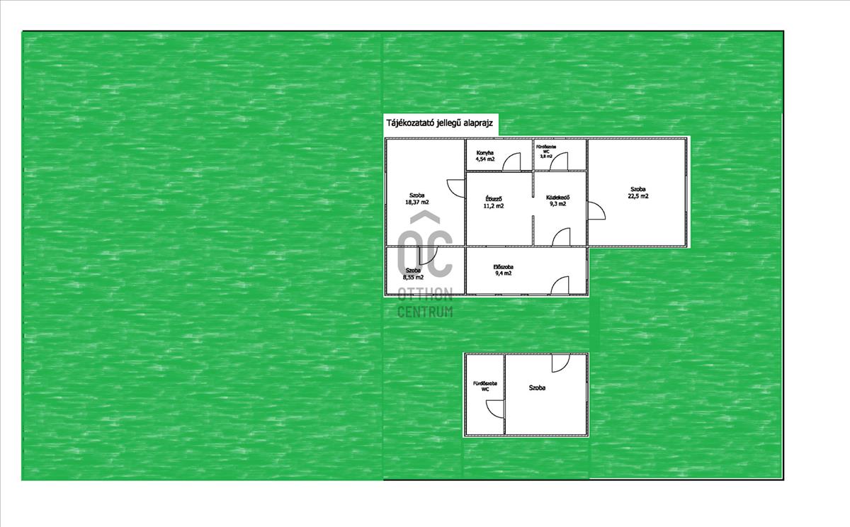 A ház mellett található egy kb. 16 m2-es különálló házikó, mely 1 szobából és fürdőszobából áll. Alkalmas lehet akár két generáció együttélésére is.