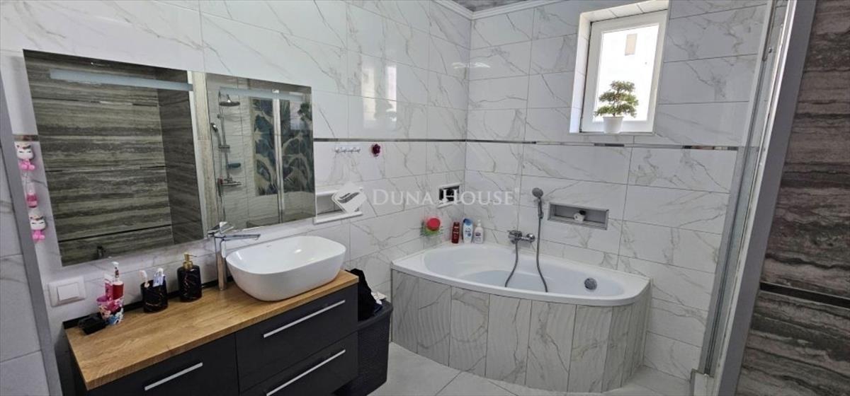 modern, igényesen kialakított fürdőszoba (kád + zuhany)