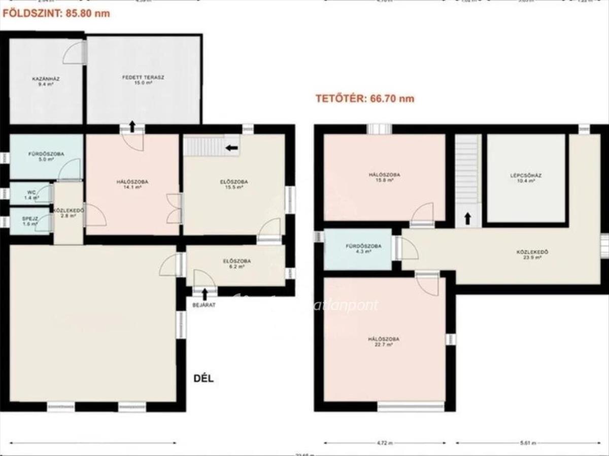 Az elrendezés lehetővé teszi, hogy az ingatlan akár két különálló lakrészre is osztható legyen.