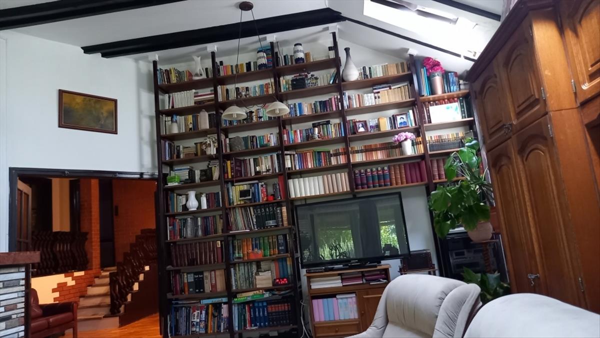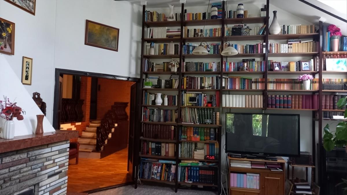 A ház különlegessége a földszinten lévő 35 m2-es márvány kandallós, tetőablakokkal ellátott hatalmas fényes nappali. Ez akár egybenyitható a jelenleg fallal elválasztott szintén nagy belmagasságú ebédlővel. Innen nyílik a konyha + kamra és a különálló wc + külön kézmosó és a szuterén lejáratával.