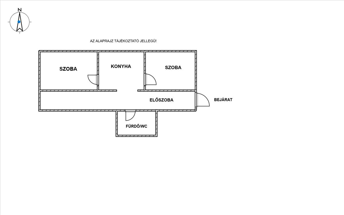 Az ingatlan 58 m² hasznos alapterülettel rendelkezik, praktikus elrendezésének köszönhetően kényelmes életteret biztosít. Kialakításra került benne egy előszoba, 2 szoba, konyha, fürdőszoba/wc