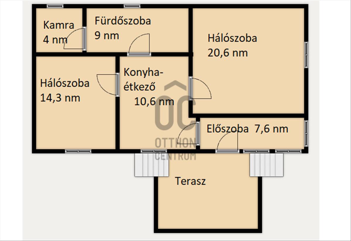 -2 külön nyíló hálószoba, konyha-étkező, előszoba, tágas fürdőszoba, kamra lett kialakítva,