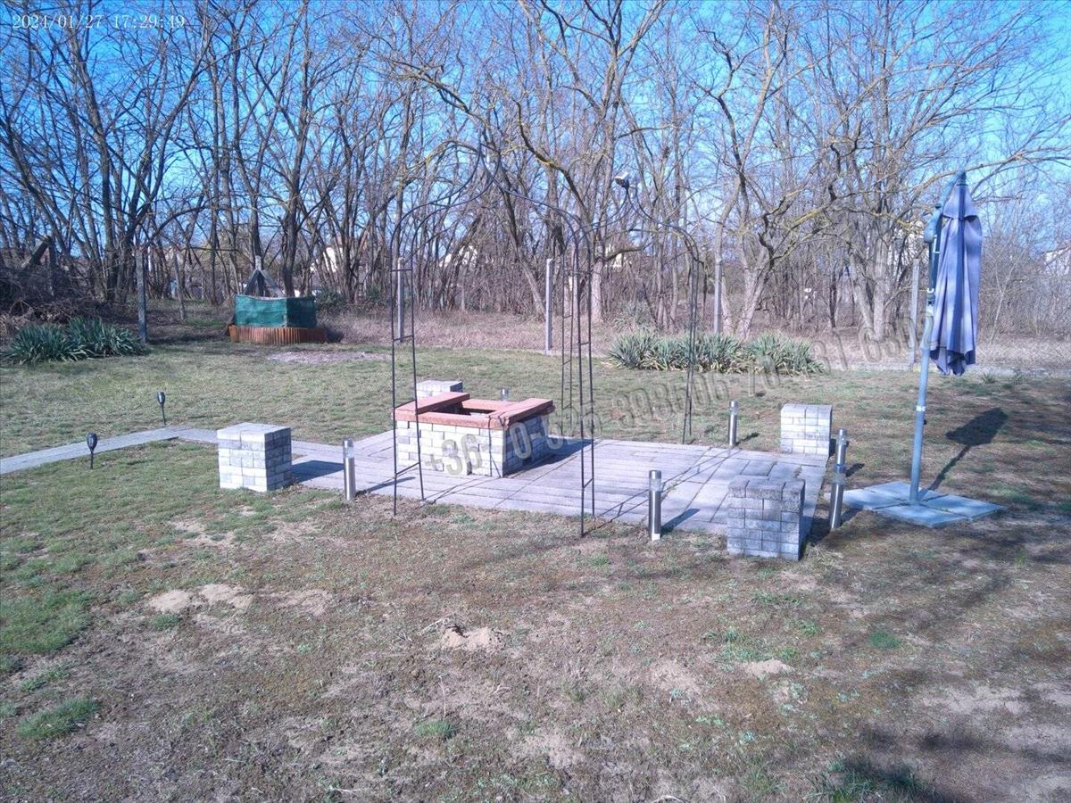 A kertben virágok nyílnak, hátul térkövezett kerti sütő kapott helyet. a kertben egy tároló is épült. Gyermek medence és homokozó is bőven elférhet.