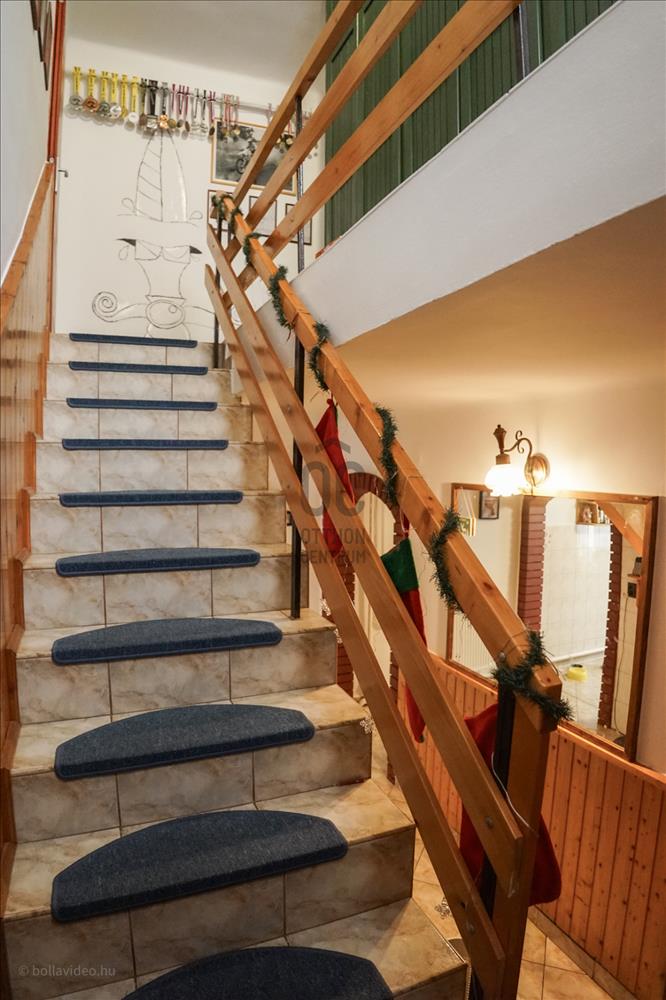 A külső lépcsőn megközelíthető lakrészben egyből az első emeletre érkezünk, ahol a lépcsőházból nyílik egy wc-kézmosó, egy kamra, konyha, és külön étkező.