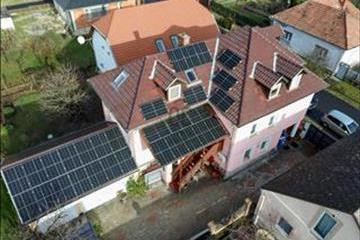 A ház melegéről gázkazán gondoskodik radiátoros fűtéssel. Ezt azonban nem kellett a tulajdonosnak használni két éve, mióta megépült a 12 kW -os napelem rendszer.