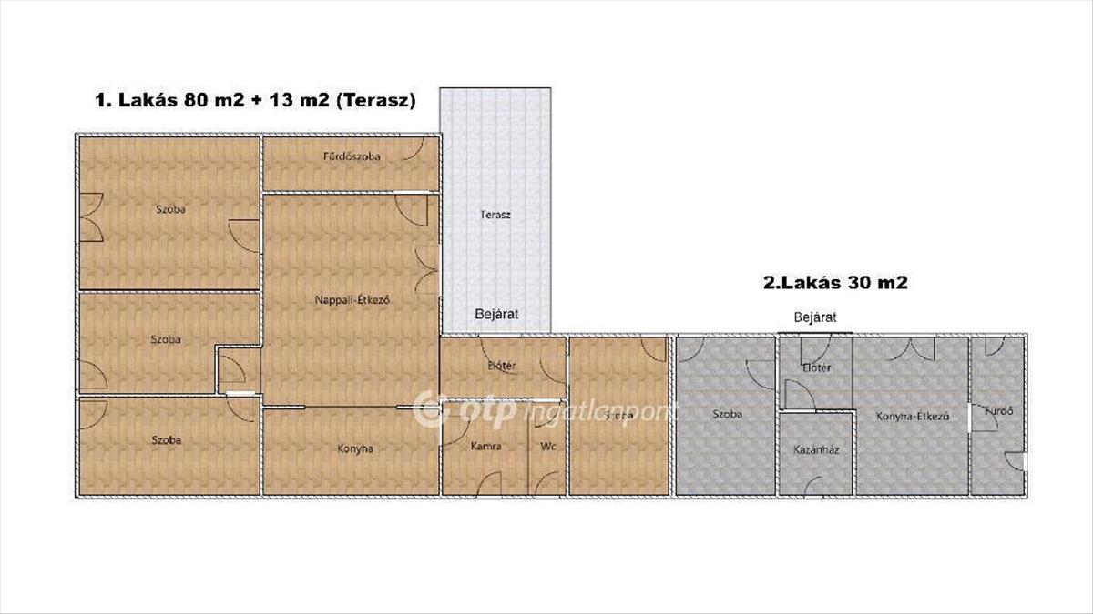 -valamint egy 30 m2-es külön bejáratú garzonlakás.