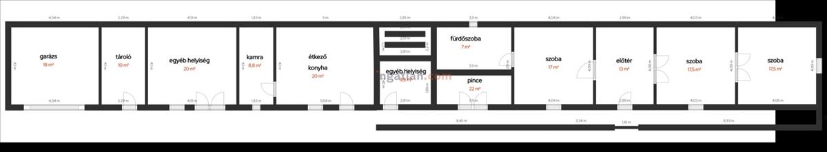 Helyiségek: 72 m2 főépület - 3 szoba, előtér, fürdőszoba wc-vel