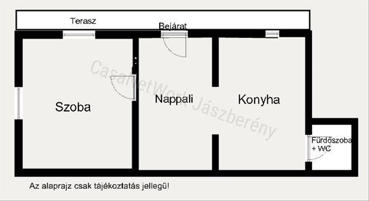 - 1 szoba, nappali, konyha+étkező, fürdőszoba+WC helyiség,
