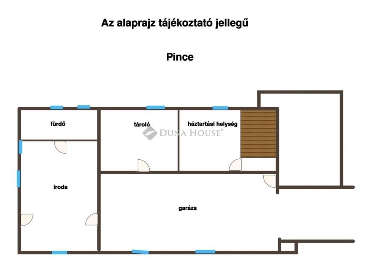 Pinceszinten garázs, iroda helység beépített bútorokkal és háztartási helység található,