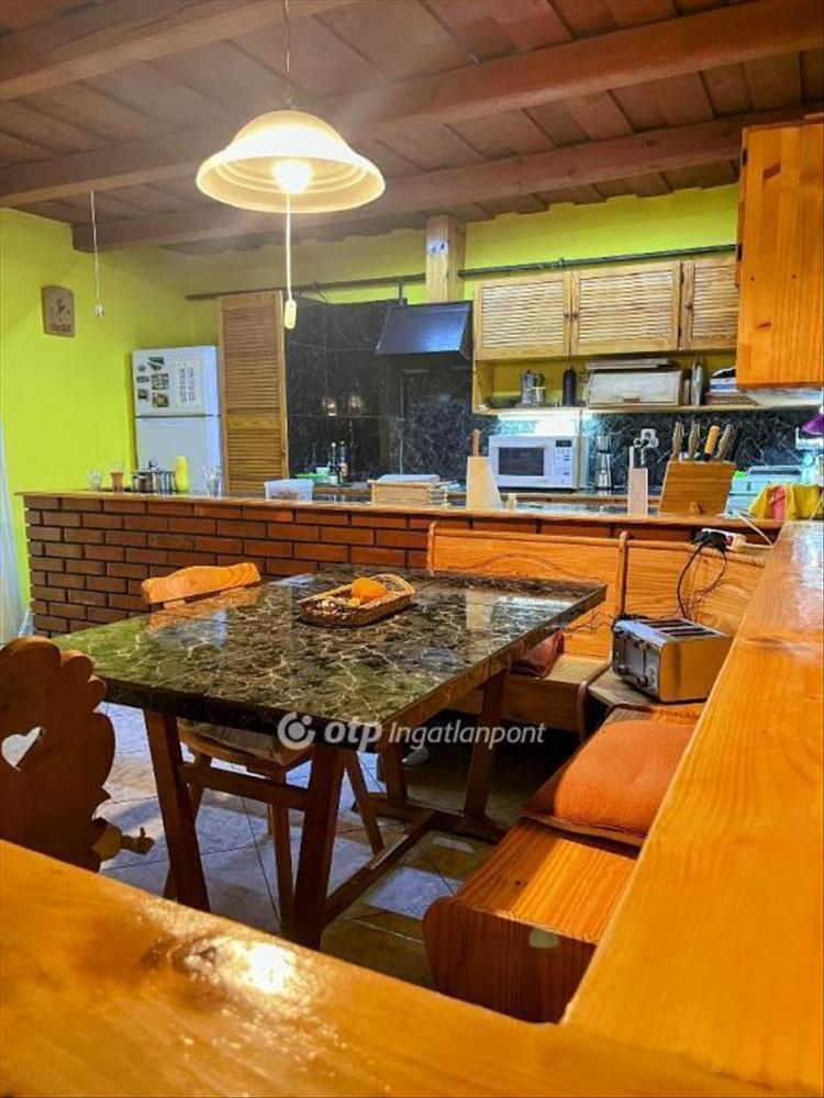 Nyílászárok fa hőszigetelt üveg, helyiségek járólappal burkoltak, mennyezet fa gerenda fedésű.