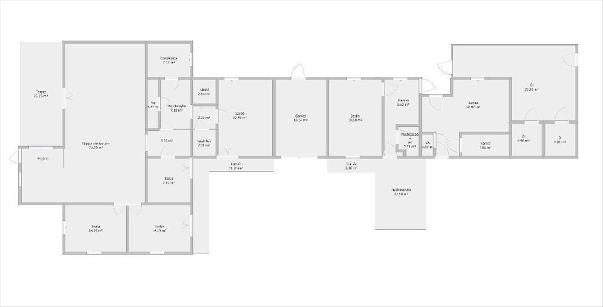 Az ingatlan első része 160nm-es, terasz 22nm, Amerikai-konyhás nappali 71nm, 3 szobás 14/14/20nm, lakás, majd egy aknás garázs 19nm, egy 32nm-es 1 szobás összkomfortos apartman, és a 72nm-en különböző méretű tárolókat, műhelyet találunk aminek egyikében wc és tusoló is kialakított.