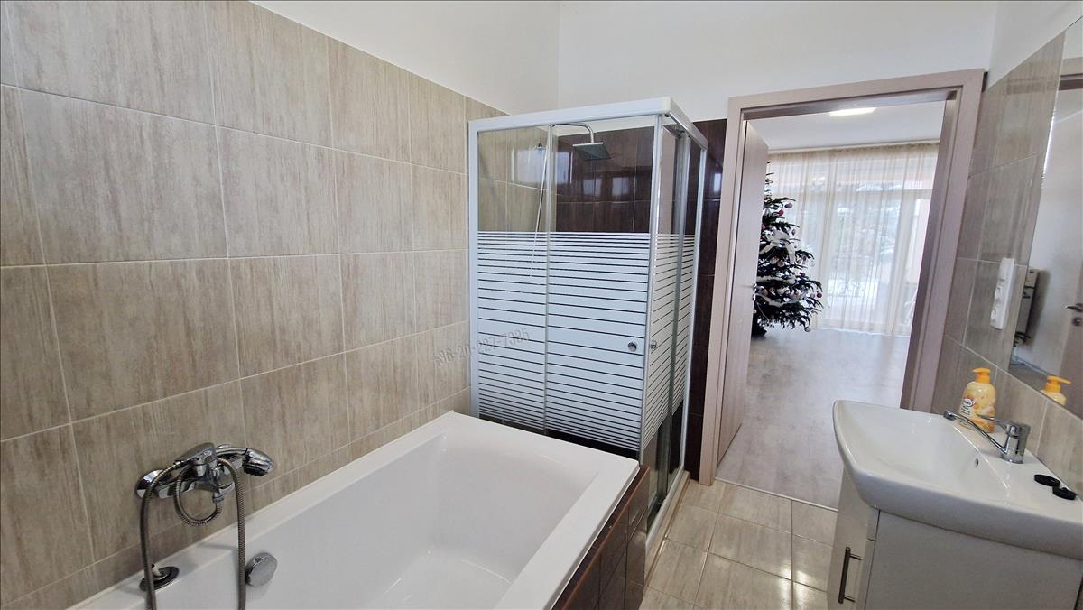 Az ingatlan dupla komfortos, a fürdőszobák káddal és zuhanyzóval is rendelkeznek, van külön wc is, riasztórendszerrel felszerelt, valamint fúrt kúttal is rendelkezik, amely a kert gondozását költséghatékonyan segíti. a házhoz tartozik egy 26 m²-es dupla garázs, továbbá egy 75 m²-es tároló, amely kiválóan alkalmas műhelynek, raktárnak vagy akár vállalkozási célra is.
