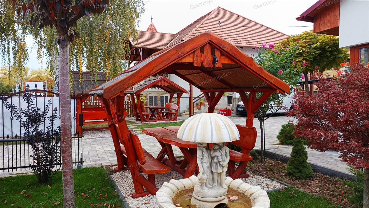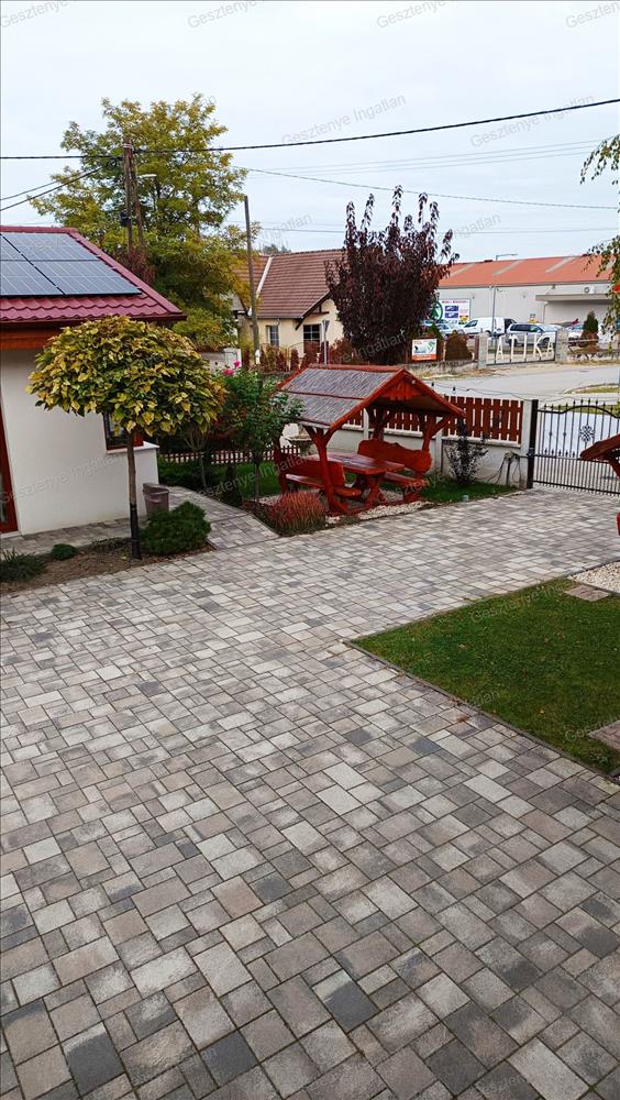 A 817 m²-es, parkosított kert igazi ékszerdoboz: három hangulatos nádfedeles kiülő, 2 állásos fedett kocsibeálló, több autó számára alkalmas térkövezett parkolófelület, gondosan ápolt zöldfelületek, térkövezett járda és elektromos kapu biztosítják a kényelmet. Az udvaron elektromos autóknak töltőállomás került kialakításra.