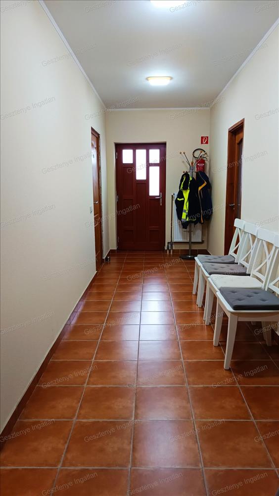Elosztása: egy nagy vendégfogadó tér, önálló helyiségben konyha, egy további ajtóval elzárt helyiség, ami szobaként hasznosítható, innen nyílik egy zuhanyzós fürdőszoba, külön férfi és női wc került kialakításra közös előtérrel.