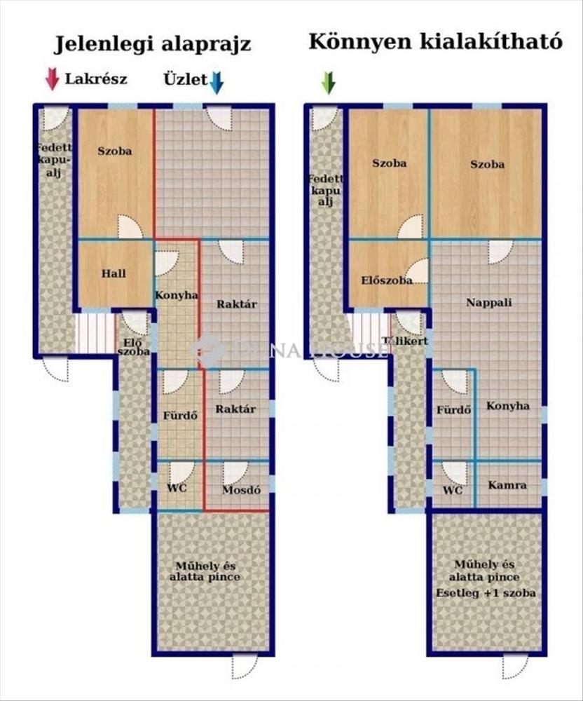 A megosztott kialakítás lehetővé teszi a párhuzamos hasznosítást (lakhatás + vállalkozás), illetve bérbeadási konstrukcióban is stabil megtérülési potenciált kínál. a pontos elrendezés az alaprajzon tekinthető meg.