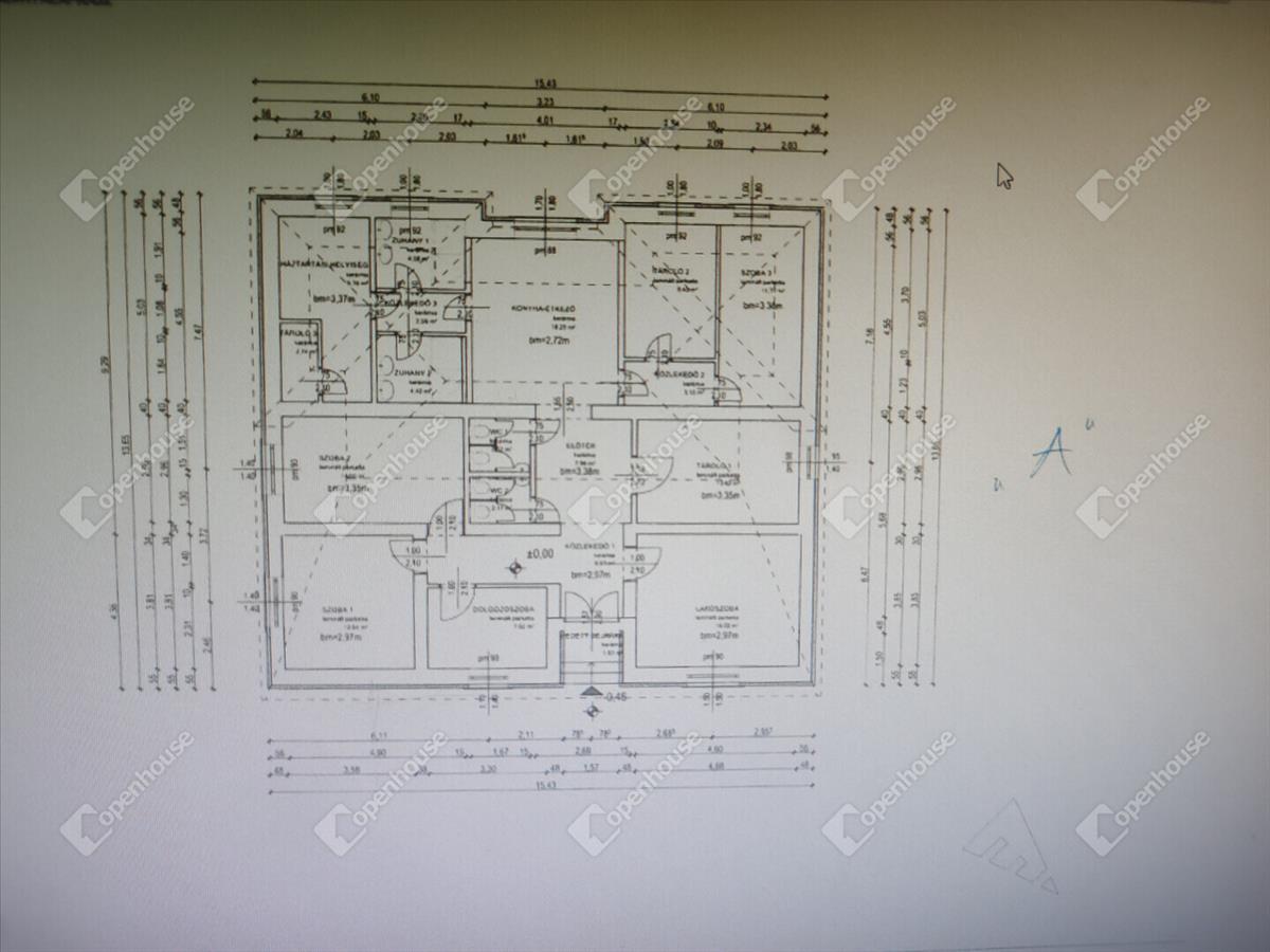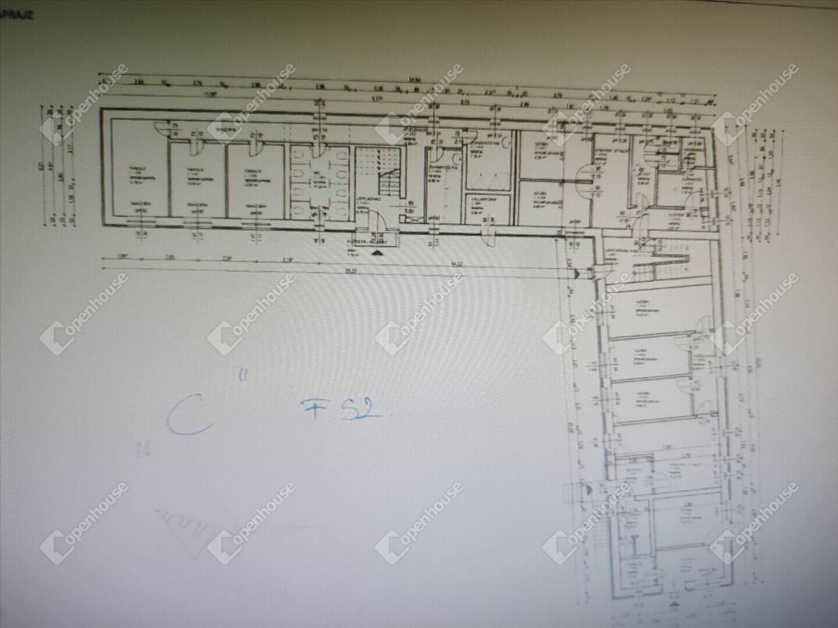 - Az a épület: 158 nm-en 4 egész, 4 fél szoba, tekintélyes méretű konyha, két zuhanyzó, kettő toalett, előtér, és közlekedő alkotja. Itt akár két lakás kialakítására is van lehetőség.