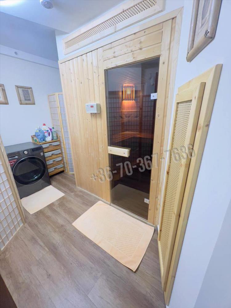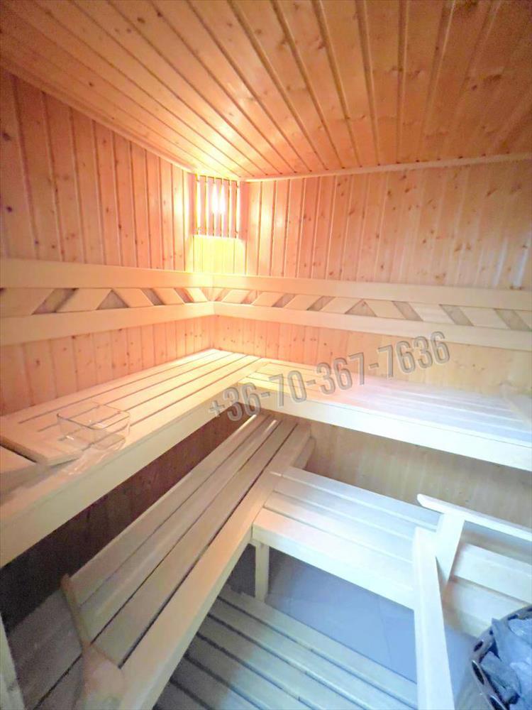 A szuterén külön kis birodalom: itt kapott helyet egy vendégszoba, egy vadonatúj fürdőszoba, egy kényelmes szauna, valamint a gépészet.