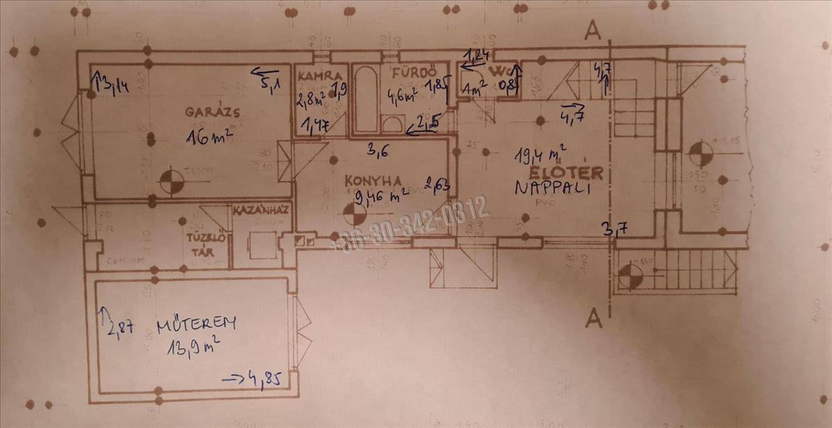 Az ingatlan két szintes, a földszintről nyílik a tágas nappali, a konyha, kamra, fürdőszoba és a külön wc.