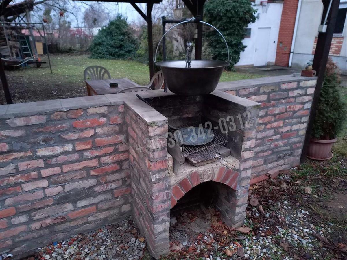 A kertben fedett kiülő és sütögető nyújt árnyékot nyáron.