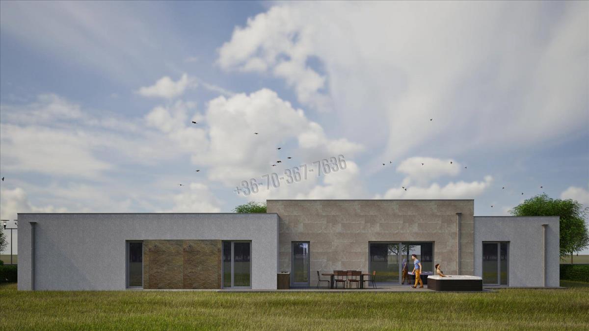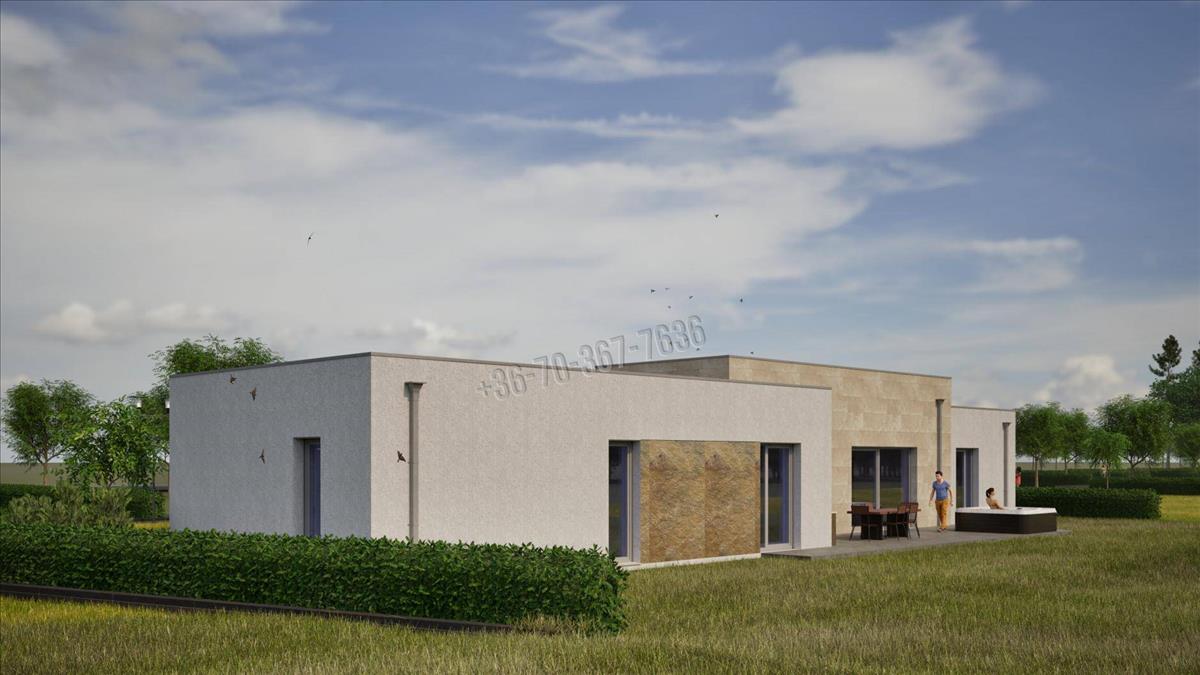 A mai modern igényeket jól kiszolgáló, lakóterében egyszintes, kényelmesen élhető, három szoba + amerikai konyhás nappalis, két fürdőszobás, két beállásos garázzsal megépített önálló családi ház fogalmazódott meg a tervezés során. Melyet alaposabban áttanulmányozhat a tervrajzok és a látványtervek segítségével.