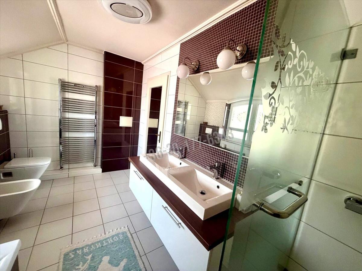 A ház szintenként kb. 67 Nm hasznos, nettó lakóterülettel rendelkezik. Az alsó (szuterén) szint – amely korábban üzletként működött – teljesen leválasztható, külön bejárattal is rendelkezik, ugyanakkor a fő lakótérből is megközelíthető. Több helyiség, vizesblokkok, valamint egy finn szauna és zuhanyzó is helyet kapott itt, így ez a szint kiválóan alkalmas: