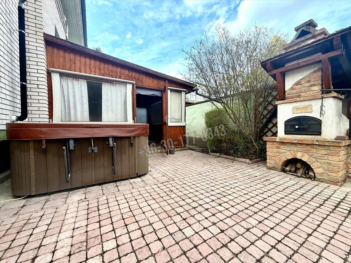 A közel 600 m²-es, két külön helyrajzi számon nyilvántartott telek egy gondosan megtervezett, intim hangulatú kertet foglal magában. a hátsó udvar valódi privát oázis: tardosi kőburkolat, kerti tó csobogóval, kemence, fedett nyári élettér, jakuzzi – mindez úgy kialakítva, hogy a pihenés és a vendéglátás egyaránt magas szinten megvalósítható.