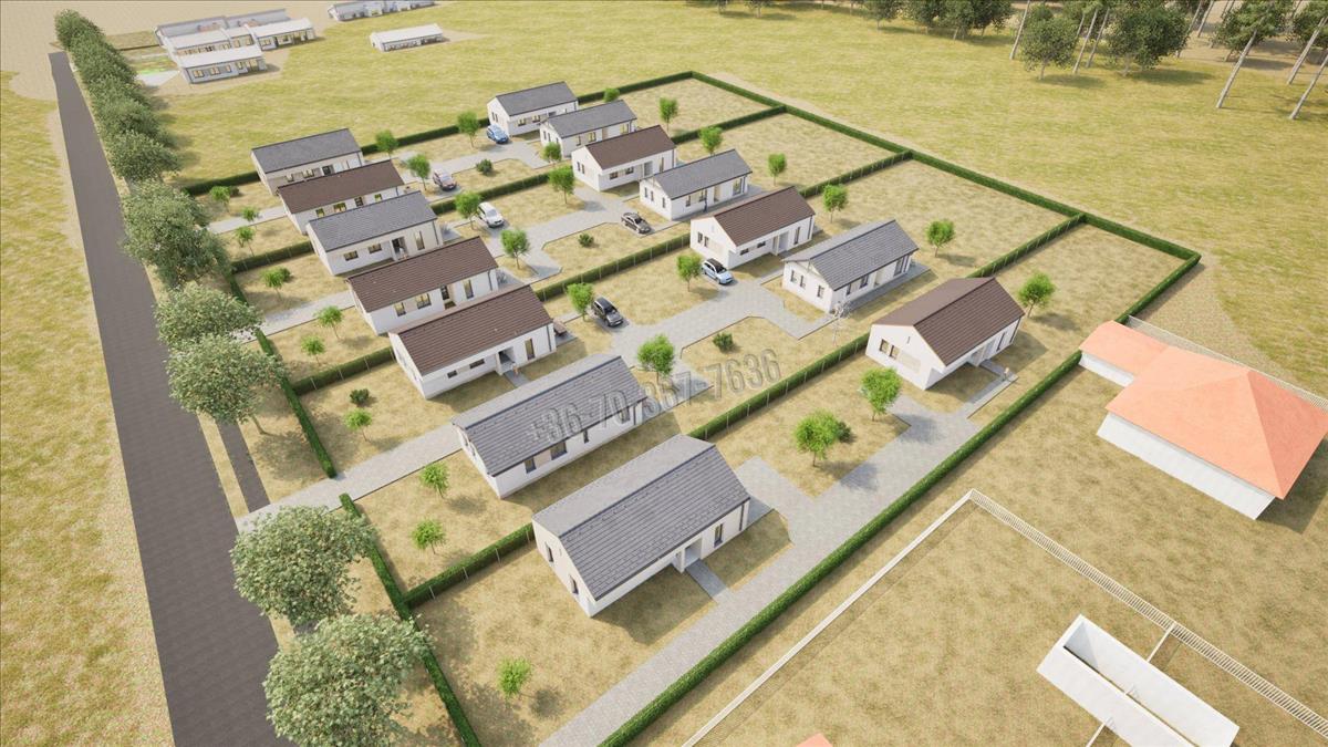 A most kialakuló lakóparkban 7 telken 2-2 egységből álló (összesen 14 db lakás) szabadon álló sorházi lakások kerülnek kialakításra. (Csok + hitelre alkalmas)