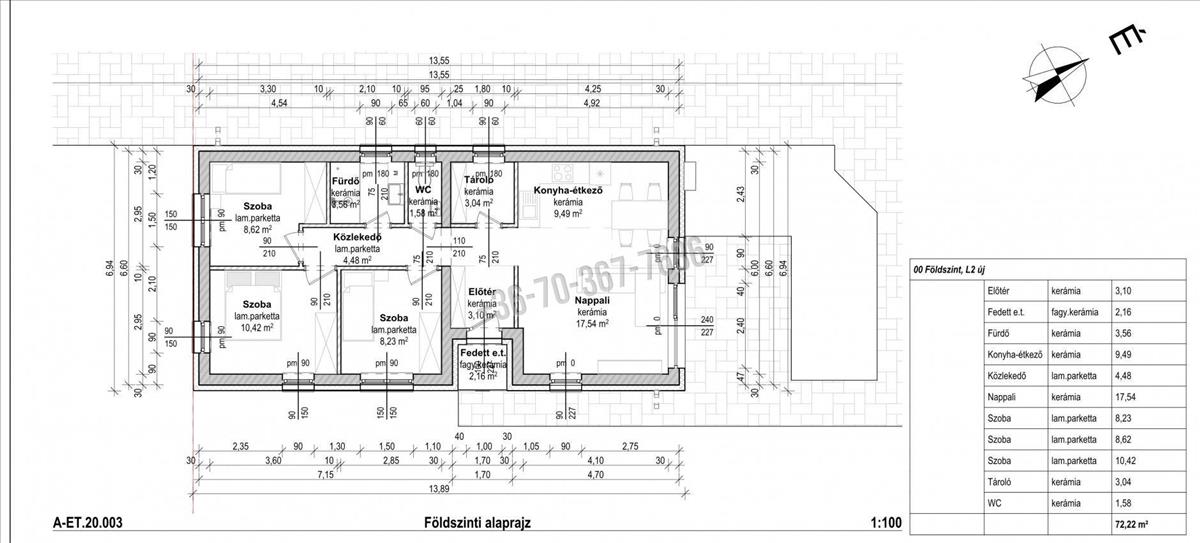 -2-es lakás: 72, 22nm + 1 16nm fedett terasz (nappali + 3 hálószoba )+ 485 nm saját kertkapcsolat