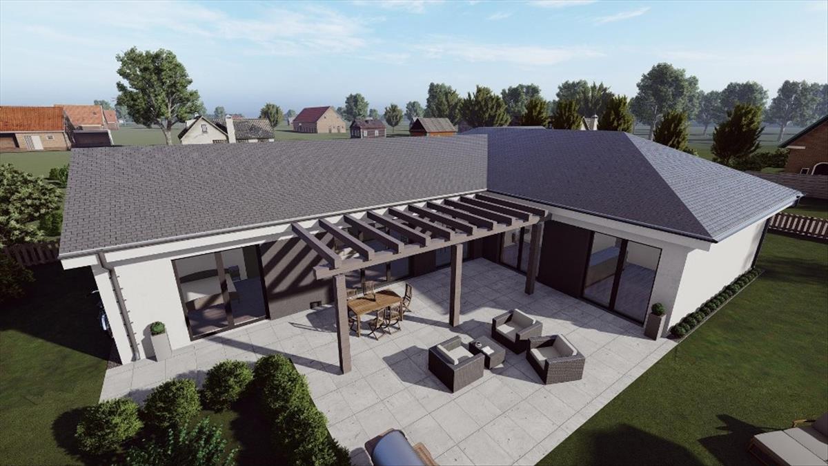 Ez az ingatlan, Olivér”, Bruttó 209 m2 beépített terület, Nettó 175 m2 hasznos alapterület. Nappali + 4 hálószoba, nagy üvegfelületek, klasszikus formavilág, többféle külső design lehetőség.