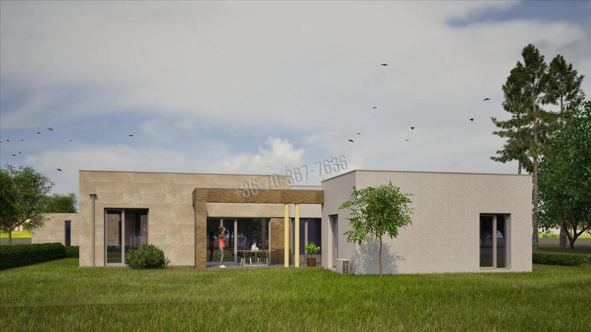 A mai modern igényeket jól kiszolgáló, lakóterében egyszintes, kényelmesen élhető, három szoba + amerikai konyhás nappalis (3 méter 30 cm belmagassággal), két fürdőszobás, fedett kocsibeállóval megépített önálló családi ház fogalmazódott meg a tervezés során. Melyet alaposabban áttanulmányozhat a tervrajzok és a látványtervek segítségével.