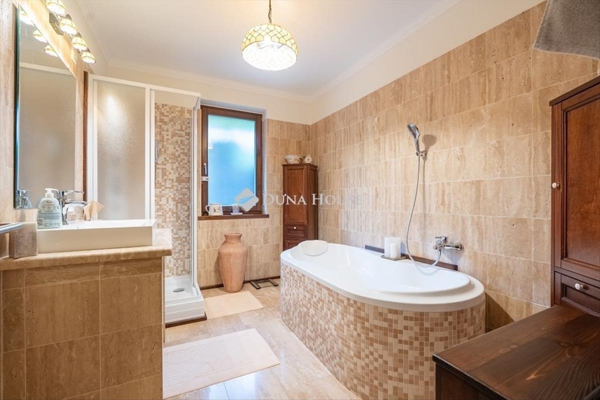 Eladó tágas, kiváló állapotú családi ház Tatán, a népszerű Fácánoskert városrészben! Ha csendes, zöldövezeti környezetben keres modern, jól felszerelt otthont, ahol a nyugalom és a kényelem kéz a kézben jár – akkor ez a tatai ingatlan Fácánoskertben ideális választás lehet! a ház 2007-ben épült, tégla szerkezetű, részben szigetelt, és minden adottsága megvan ahhoz, hogy egy család igazi otthonává váljon. Az ingatlan jellemzői:- Kétszintes kialakítás – átgondolt, praktikus elrendezéssel:Szuterén szinten található:-kétállásos garázs, -külön irodahelyiség, -fürdőszoba, -valamint egy háztartási helyiség, ahol egy szauna is helyet kapott – tökéletes relaxációs lehetőségFöldszinten:- előszoba-három különnyíló szoba, -két fürdőszoba, -gardrób, -tágas, világos nappali amerikai konyhával és étkezővel - innen közvetlen kijárat az 50m2es fedett teraszra, amely ideális helyszíne lehet baráti összejöveteleknek, családi vacsoráknak vagy egy nyugodt reggelinek a kertre nézve-két fürdőszoba, -gardrób a kert gyönyörűen parkosított és folyamatosan karbantartott, igazi zöld oázis, ahol minden adott a pihenéshez és kikapcsolódáshoz. Felszereltség és extrák:-Gázkazán padlófűtéssel – kellemes, egyenletes hőmérséklet az egész házban-Klímaberendezés – hűsítő komfort a melegebb hónapokban-Modern riasztórendszer – biztonságban tudhatja otthonát-Jakuzzi a teraszon – egész évben használható kikapcsolódási lehetőség a saját kertedbenMiért épp Fácánoskert? a városrész Tata egyik legkeresettebb része, köszönhetően csendes, zöld környezetének, kiváló közlekedésének és rendezett, barátságos utcáinak. Az Öreg-tó, iskolák, óvodák, üzletek és egyéb szolgáltatások néhány perces távolságra találhatók, így minden adott a kényelmes mindennapokhoz. Érdemes személyesen is megnézni! Ne hagyja ki ezt a kivételes lehetőséget – vegye fel velünk a kapcsolatot még ma! Hitel.hu - Hasonlítsa össze a bankok lakáshitel ajánlatait