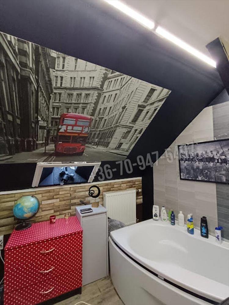Innen tovább lépve érünk a konyha étkező részbe folyosóval elválasztva pedig a fürdő és külön toalett lett kialakítva. 2 Teljes értékű külön bejáratos szoba található még az alsó szinten.