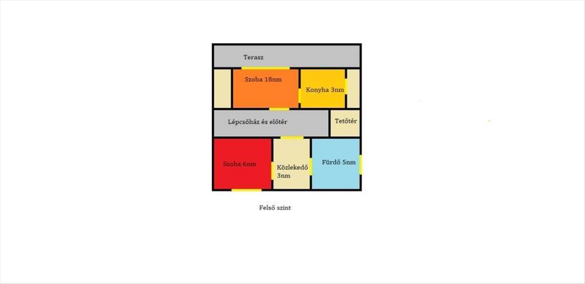 Az emeleten egy terasszal határos szoba. Tetőtér síkjában kis konyha, fürdőszoba és egy hálófülke lett kialakítva.