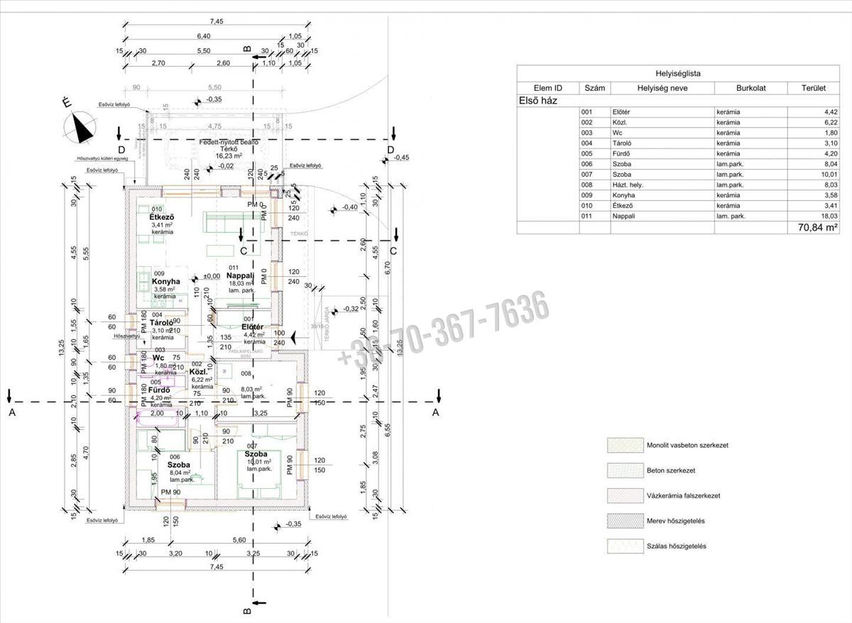 -1-Es lakás:73, 79nm + 16nm fedett terasz (nappali + 3 hálószoba )+ 485 nm saját kertkapcsolat