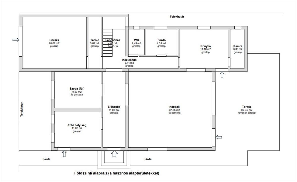Az autó biztonságos tárolásáról egy 20 nm garázs gondoskodik, amely közvetlenül kapcsolódik az udvarhoz.