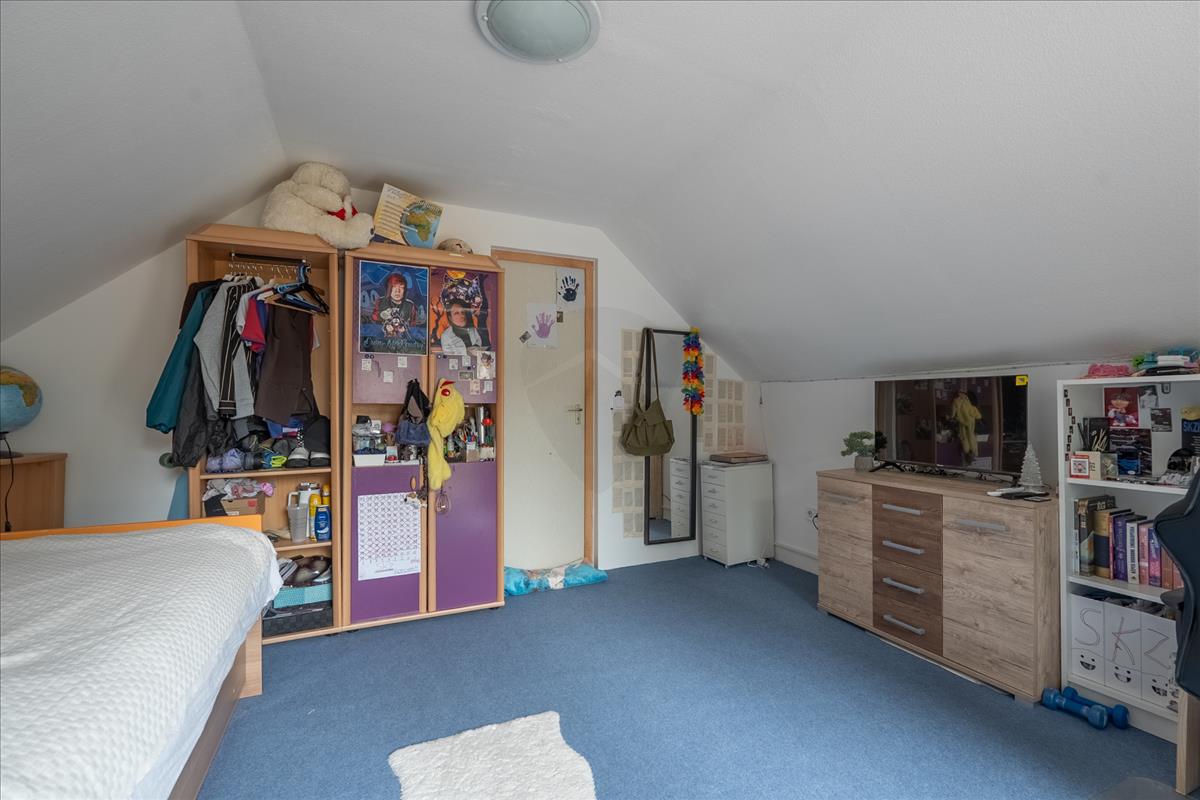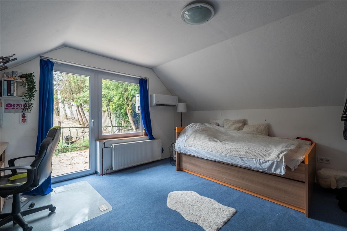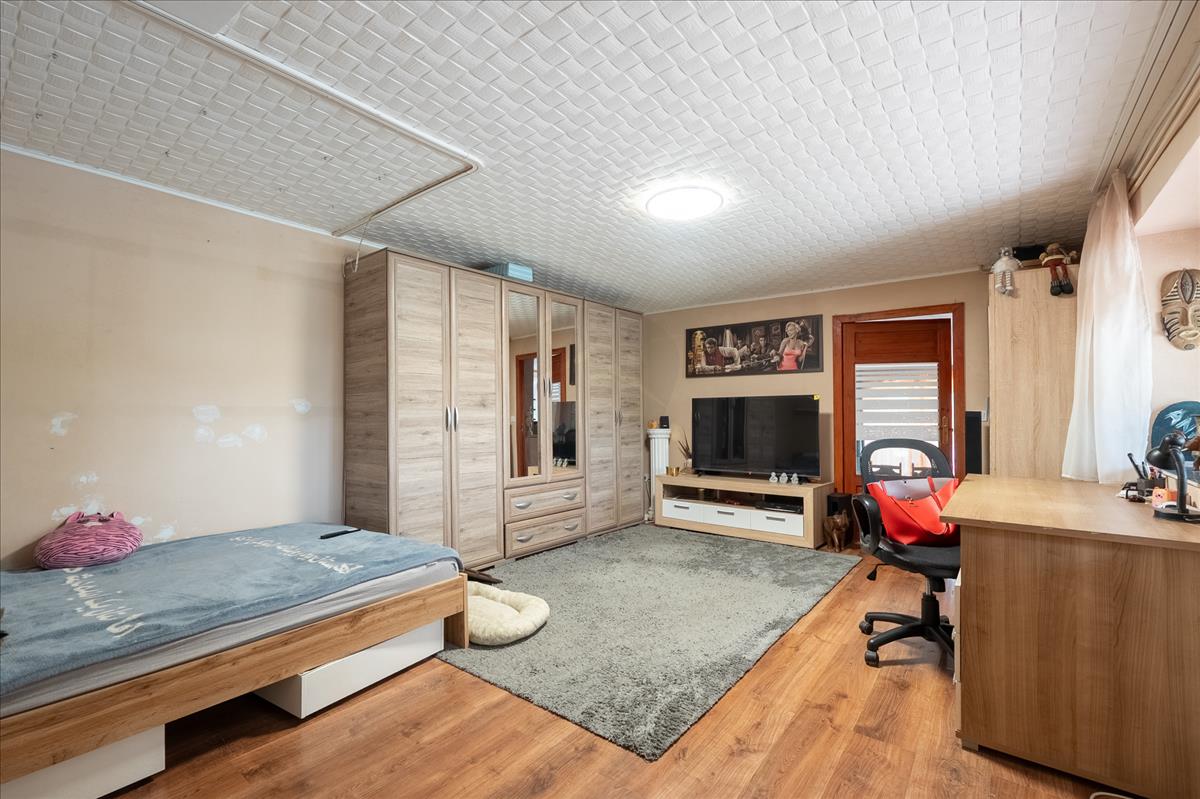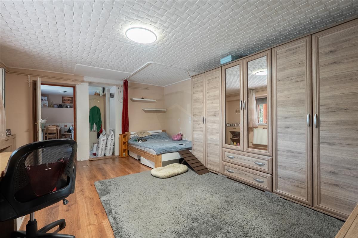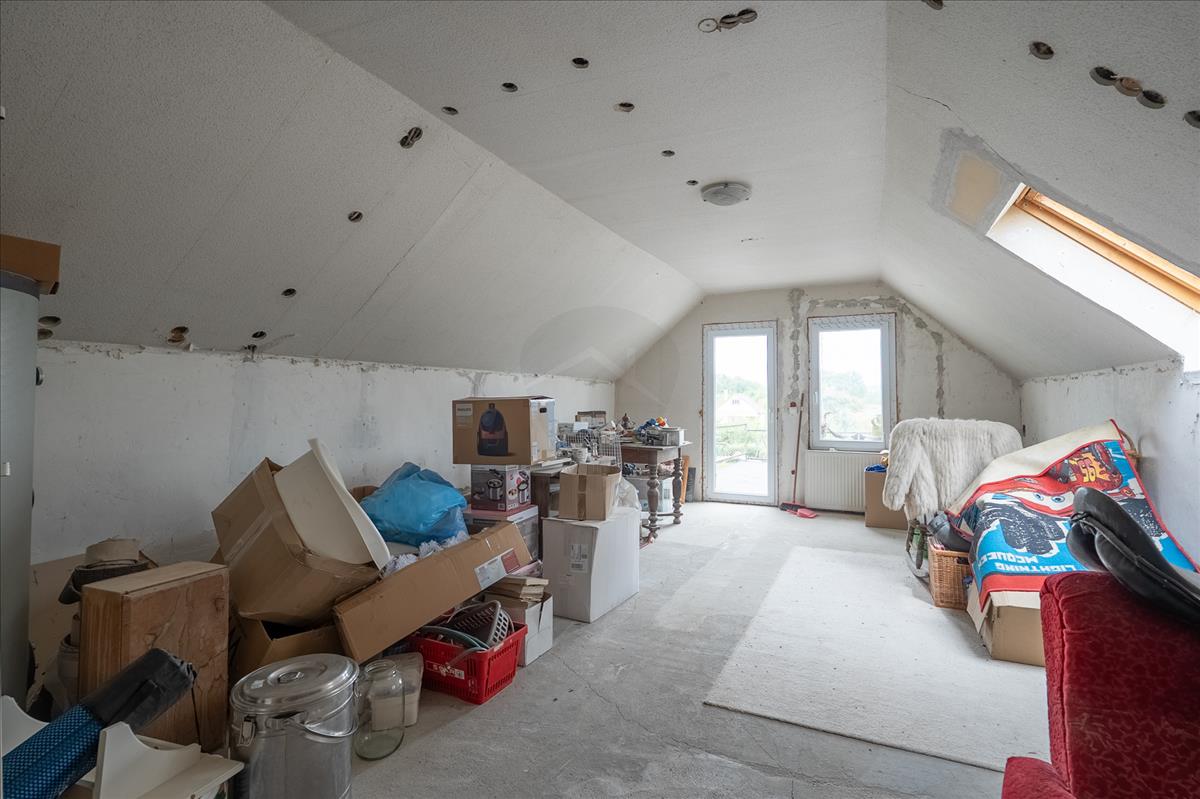 A tetőtér 46 m²-es, amelynek egyik fele már beépített, itt jelenleg egy hálószoba található, a másik fele pedig szabadon alakítható – legyen szó egy újabb hálószobáról, dolgozószobáról vagy akár kreatív műhelyről. a földszinti fürdőszoba szintén nemrég esett át felújításon. a ház vízellátását egy 80 méter mély fúrt kút biztosítja, míg a kert locsolásához egy külön ásott kút áll rendelkezésre.