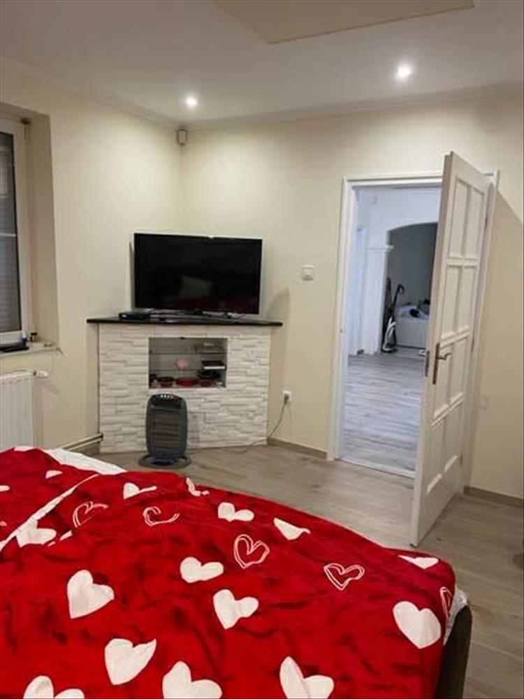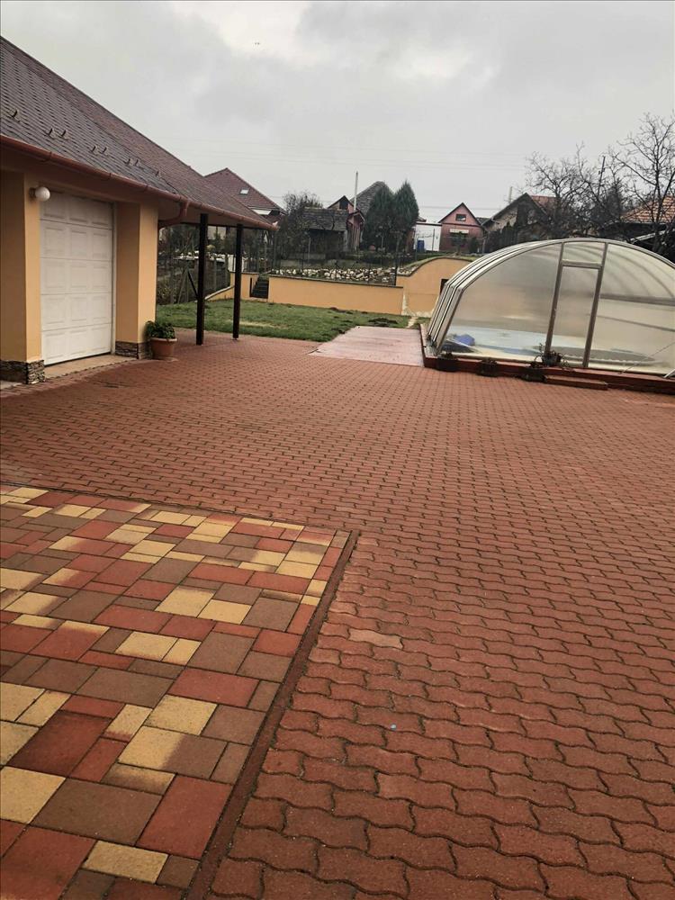A földszinten ahogy belépünk a házba található egy szép tágas amerikai konyhás nappali és két szoba valamint egy fürdőszoba és a toalett meg a kazánház. Az emeleten pedig 3 szoba és egy fürdő wc-vel plussz egy terasszal. Az összes helyiség szép burkolattal rendelkezik a szobákban mindenhol parketta van. a fűtésről gázkazán gondoskodik, nyáron pedig klíma hűti a házat. Minden nyílászáró műanyag és hőszigetelt redőnnyel és szúnyoghálóval felszerelt. a kertben található még két autó tárolására alkalmas garázs plusz fedett medence+szauna valamint egy nyárikonyha és egy nagy tárolóhelyiség is. a kert részben térkővel burkolt részben füvesített.