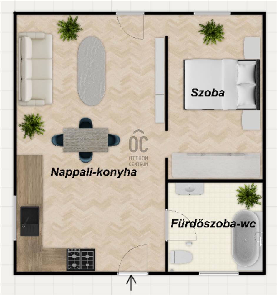 - elosztása: nappali-konyha, fürdőszoba-wc, szoba