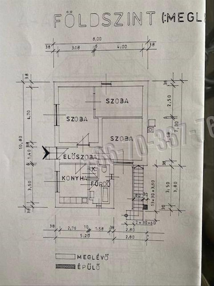 A családi ház 38-as téglából épült, vasbeton, cserép borítású tetővel, mely jó állapotban van. Külső, 10 cm-es szigetelés van a házon. Nyílászárói mindenütt műanyagok, redőnyökkel együtt.