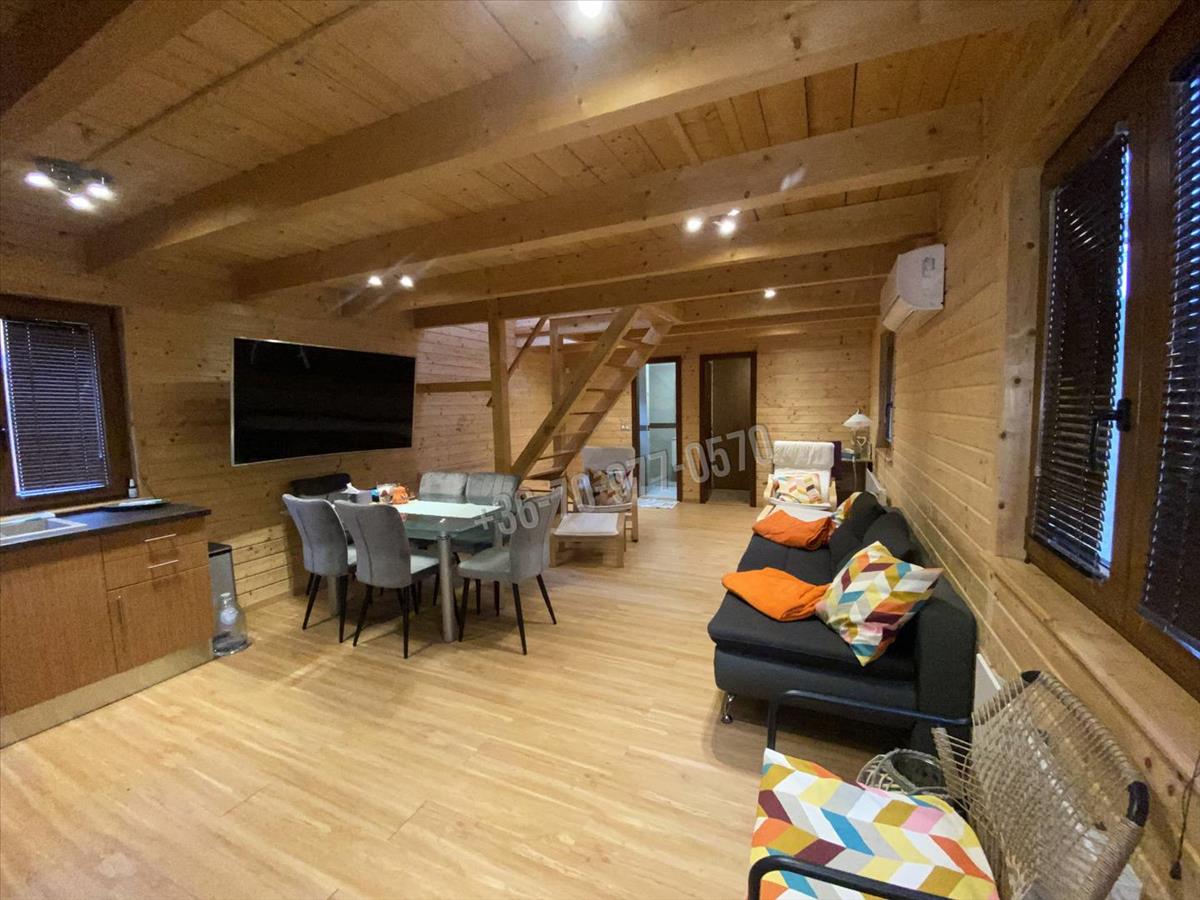 Ez a két szó, talán hűen jellemzi ezt a Komárom-Esztergom Megyében, Tatabánya határában, a Munkáséri-tó partján 5 éve épült, 2 szintes, könnyűszerkezetes, pazar panorámával bíró házat! Az M1-es autópályához és Tatabányához közel, ám mégis a fák között, jó levegőben mesés, -erdei aszfaltozott- út vezet a helyszínig.