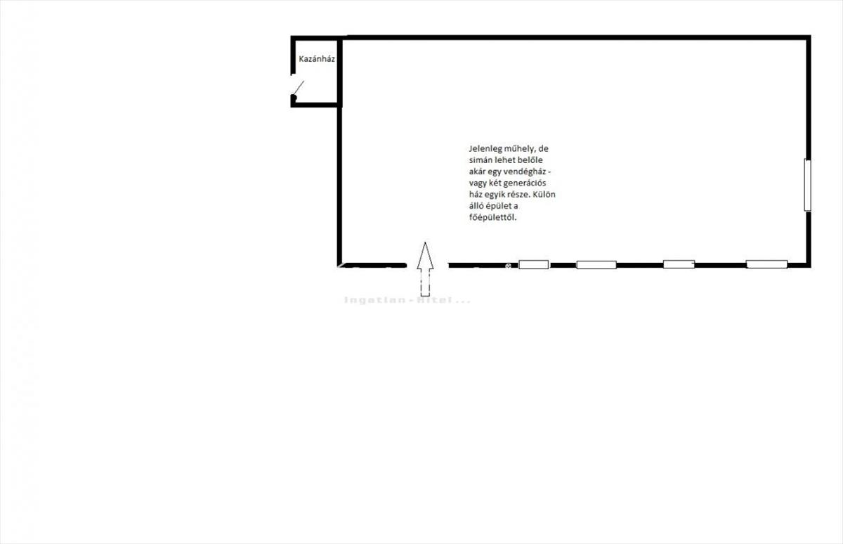 A melléképület (jelenleg műhely, 30 nm) fent van a térképen is, és könnyen lehet belőle vendégház, vagy két generációs ház, de funkcionálhat másként is.